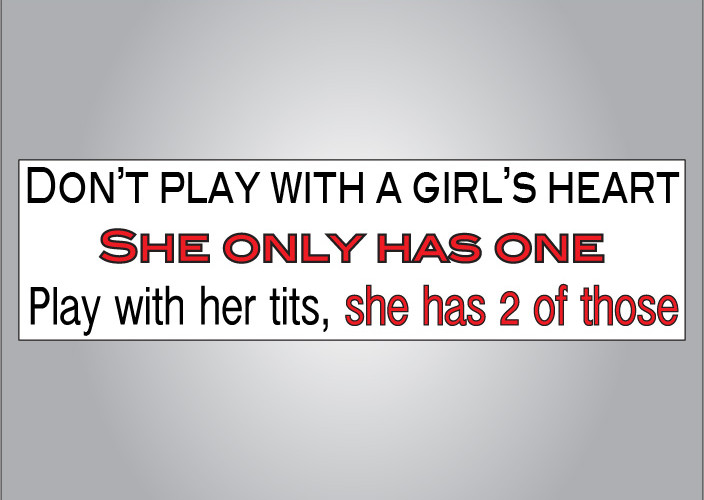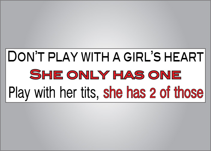 It is simple math really – if you break her heart she only has the one. If you break a tit at least she has another! Get the Don’t play with a girl’s heart bumper sticker for a crude way to show your love for the ladies.